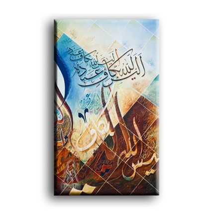 زين منزلك بتابلوه مودرن اسلامى مطبوع على الكانفاس بحودة فائقة مشدود و مثبت على إطار من الخشب الخلفى بتخانة إجمالية 3 سم مع جوانب مطبوعة بالكامل ليجعل من حائط منزلك قطعة فنية جميلة فريدة من نوعها